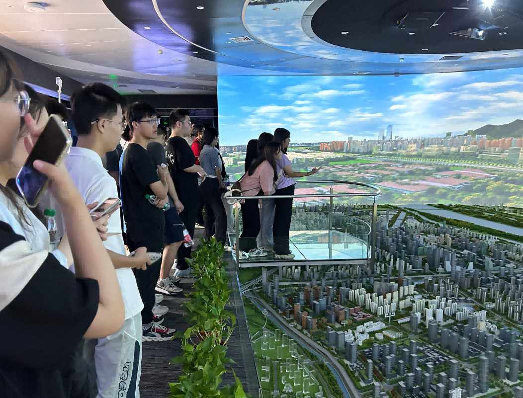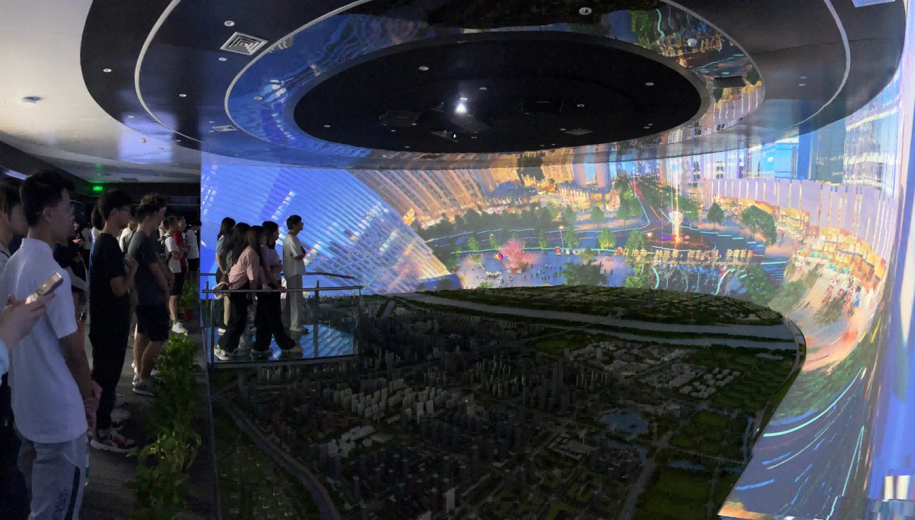 园区内现代建筑群错落有致,每一砖一瓦都蕴含着创新和科技的基因。南宫NG28(中国)科技IT菁英暑期实训营的学员们怀揣着对科技的无限憧憬步入研创园展厅。展厅内部设计充满科技感,一块块巨大的模型和显示屏映入眼帘,生动展现了研创园的科技规划,以及从梦想走向现实的开展历程。