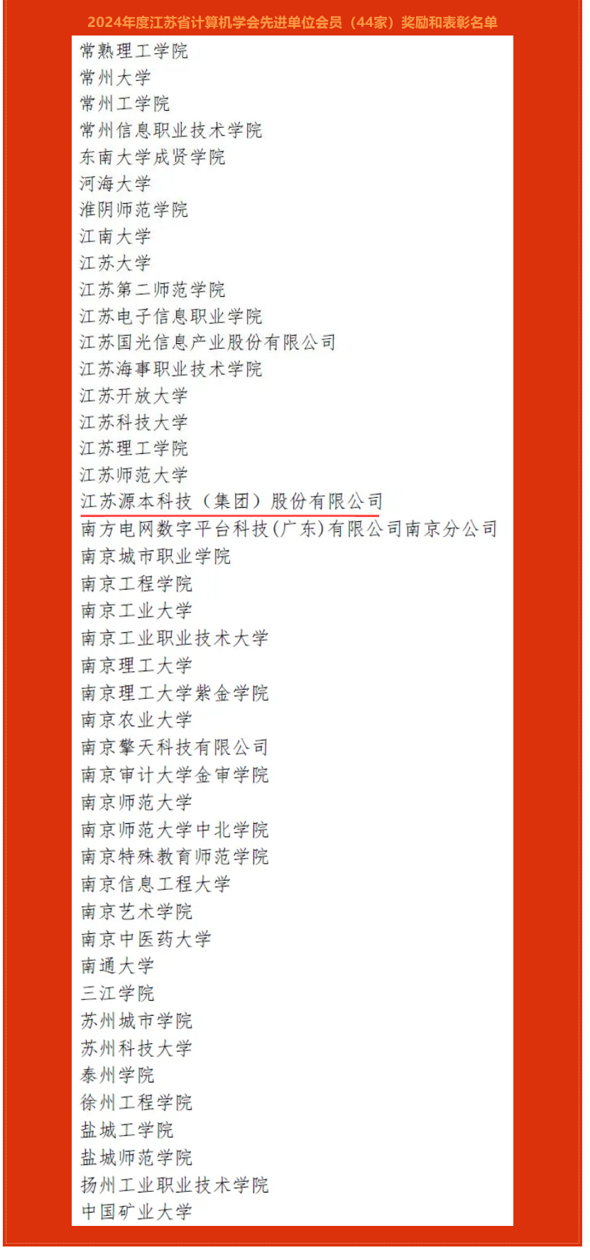 喜讯!热烈庆祝江苏南宫NG28(中国)科技(集团)股份有限公司荣获江苏省计算机学会2024年度先进单位会员